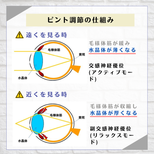 ✅目の疲れは毛様体筋の緊張が続くことでコリ固まってしまう